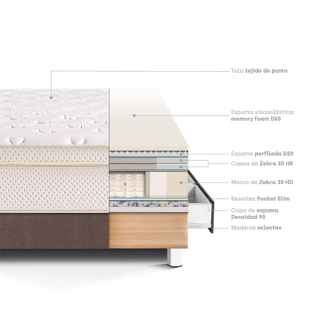 Disfruta del descanso más cómodo y natural. Royal Cloud está elaborado con Memory Foam para distribuir tu peso delicadamente y liberar los puntos de presión de tu cuerpo logrando una máxima sensación de relajo. Además, cuenta con fibras de hilos viscosa para asegurarte, a ti y a tu familia, un descanso más natural. Siéntete como en las nubes.